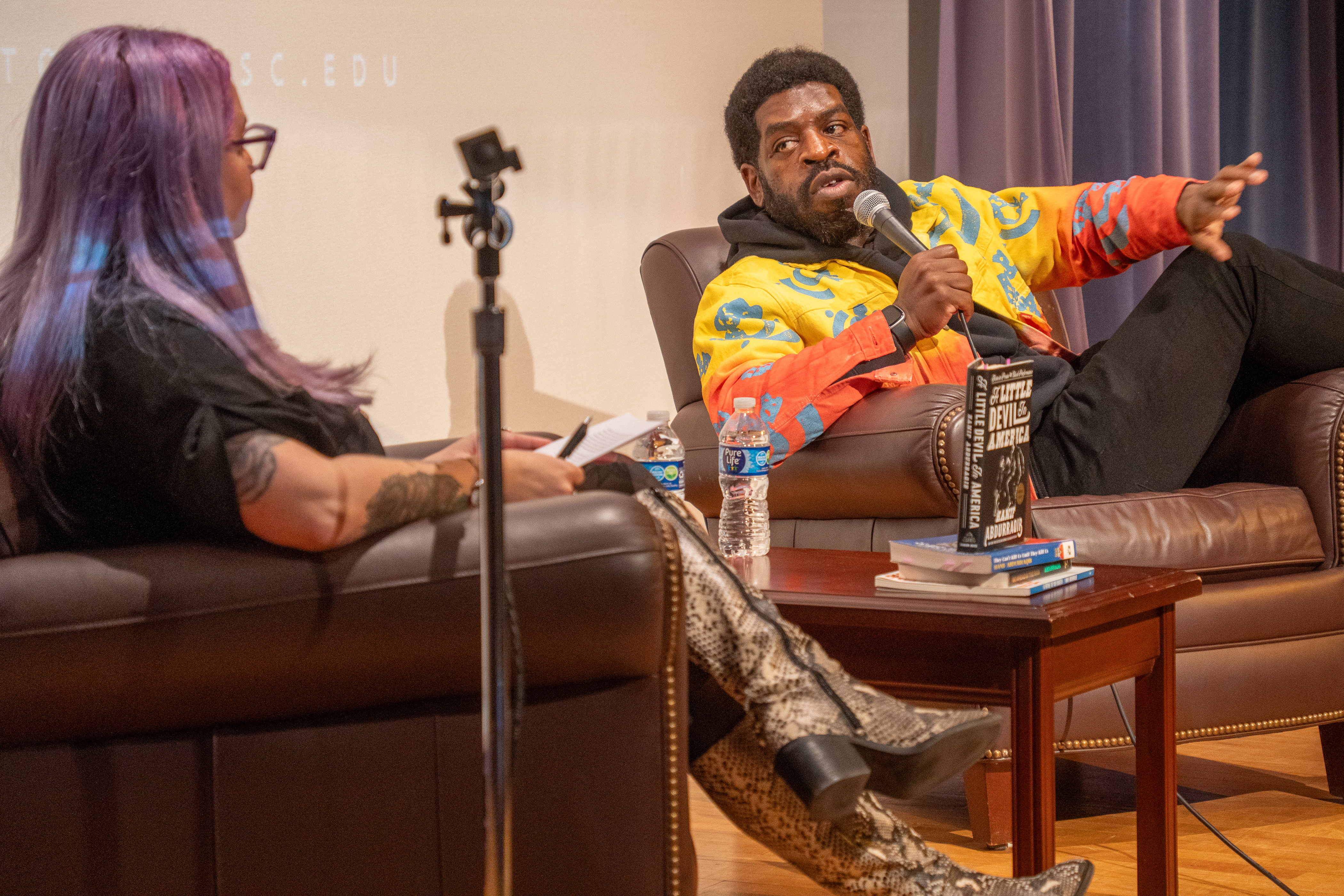 Hanif was gracious enough to participate in three separate events: a fireside chat hosted by CCH Director Kacie Lucchini Butcher, Just Bust! Open Mic, and Just Bust! workshop. It was an honor to have Hanif in conversation with UW students and community members on topics like the art of writing, poetry and performance, history, nostalgia and grief, and much more throughout each event. We learned so much from him during these events and hope our community did, too.