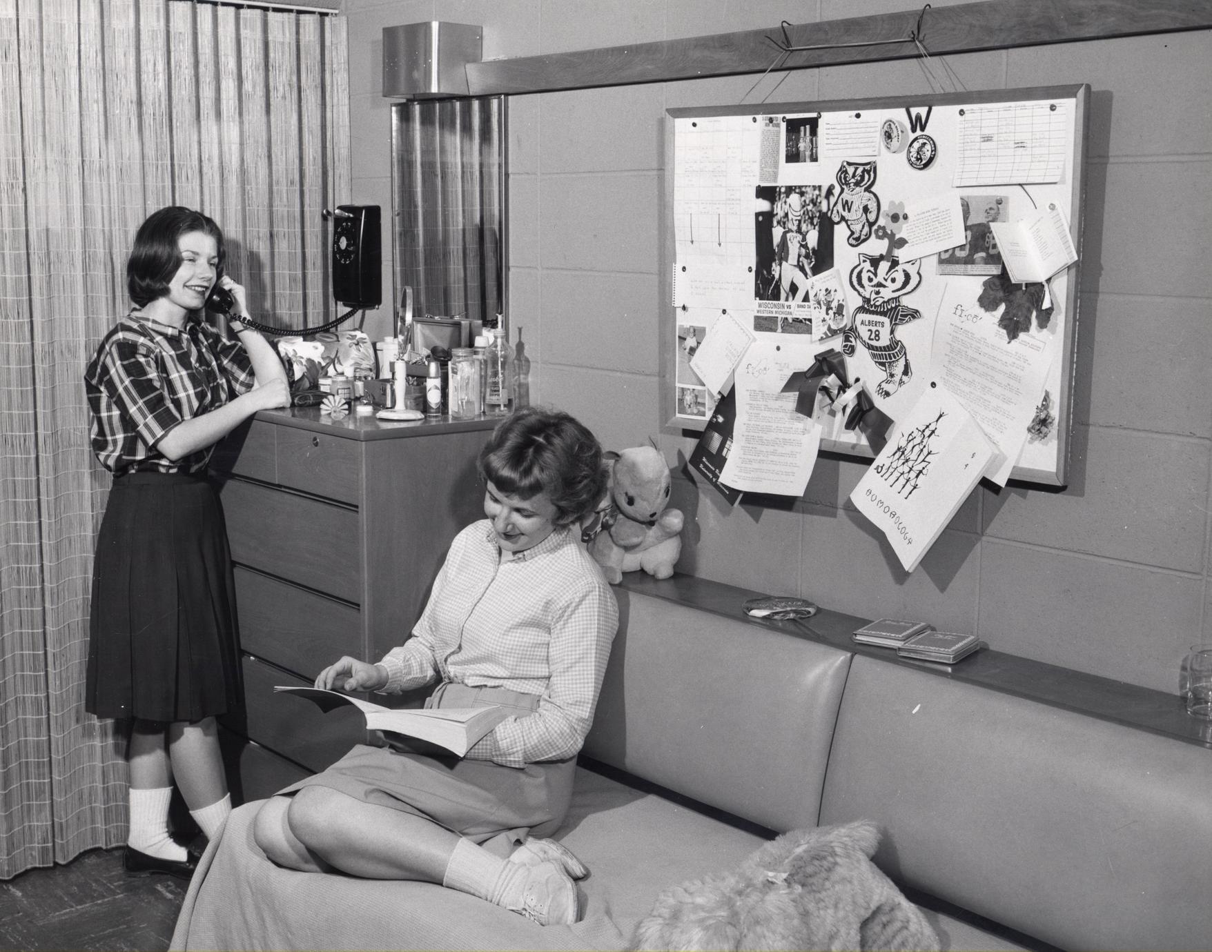 UW-Madison students in a Holt Dormitory room, April 27, 1964. UW Archives