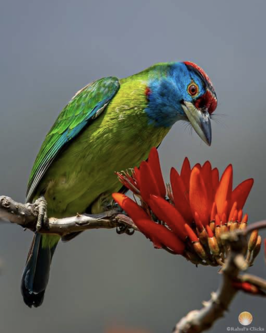 Blue-throated Barbet (Psilopogon asiaticus), family Megalaimidae, order Piciformes, HP, India.