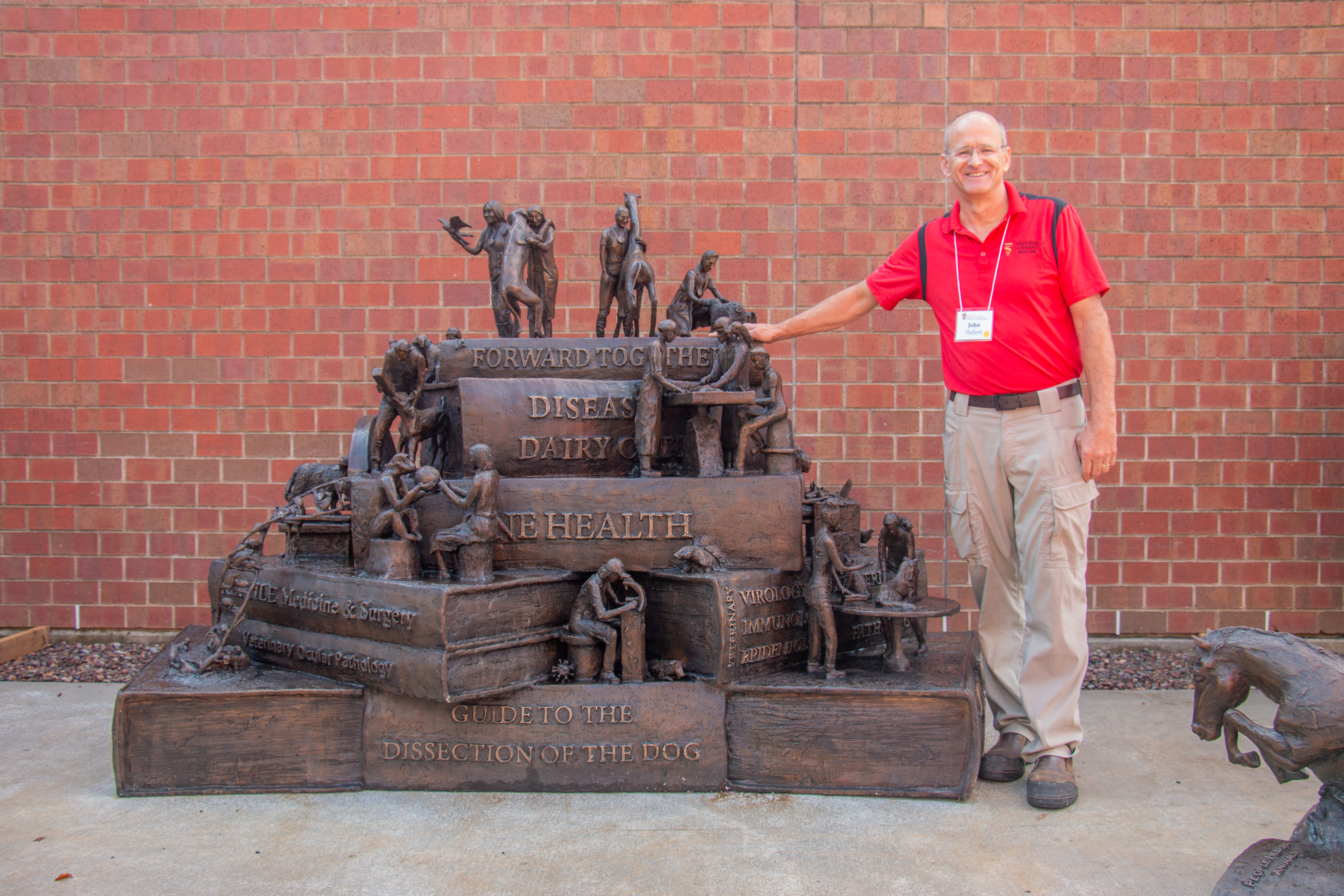 During the tailgate, we celebrated the unveiling of Forward Together, a 3,000-pound bronze sculpture created by alumnus John Hallett (DVM ’90). The sculpture honors the journey of veterinary medical students and will be a permanent fixture in the courtyard.