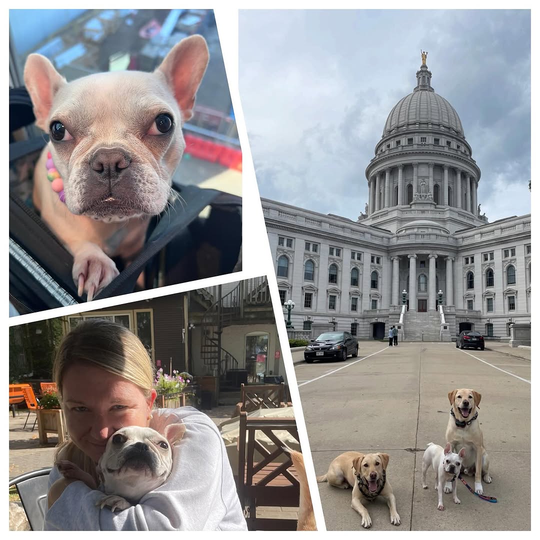 “Family day in Madison at @uwvetmed for Violet’s 6 month checkup. Thanks for taking such good care of this little girl 💜.”