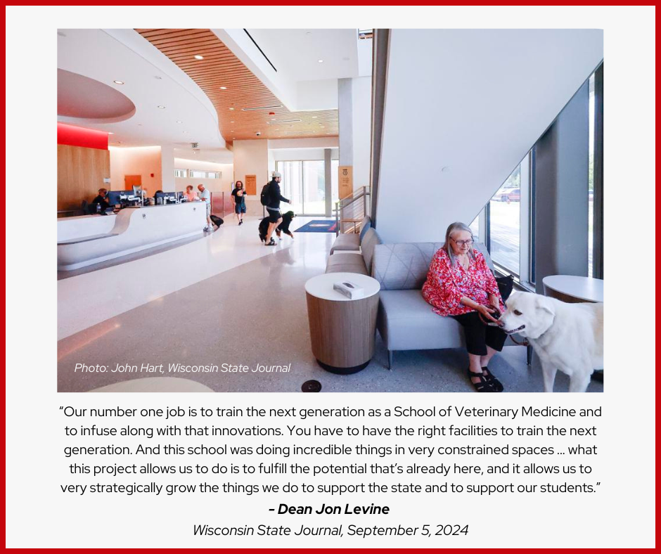 We’d like to thank Kimberly Wethal, higher education reporter and John Hart, photographer, both of the Wisconsin State Journal, for coming out to tour and report on SVM North. We were grateful for the opportunity to share how our expanded facilities ensure that our students, faculty, staff, and researchers have spaces, equipment, and technology that match the incredible caliber of work that happens at the SVM and UWVC every day.