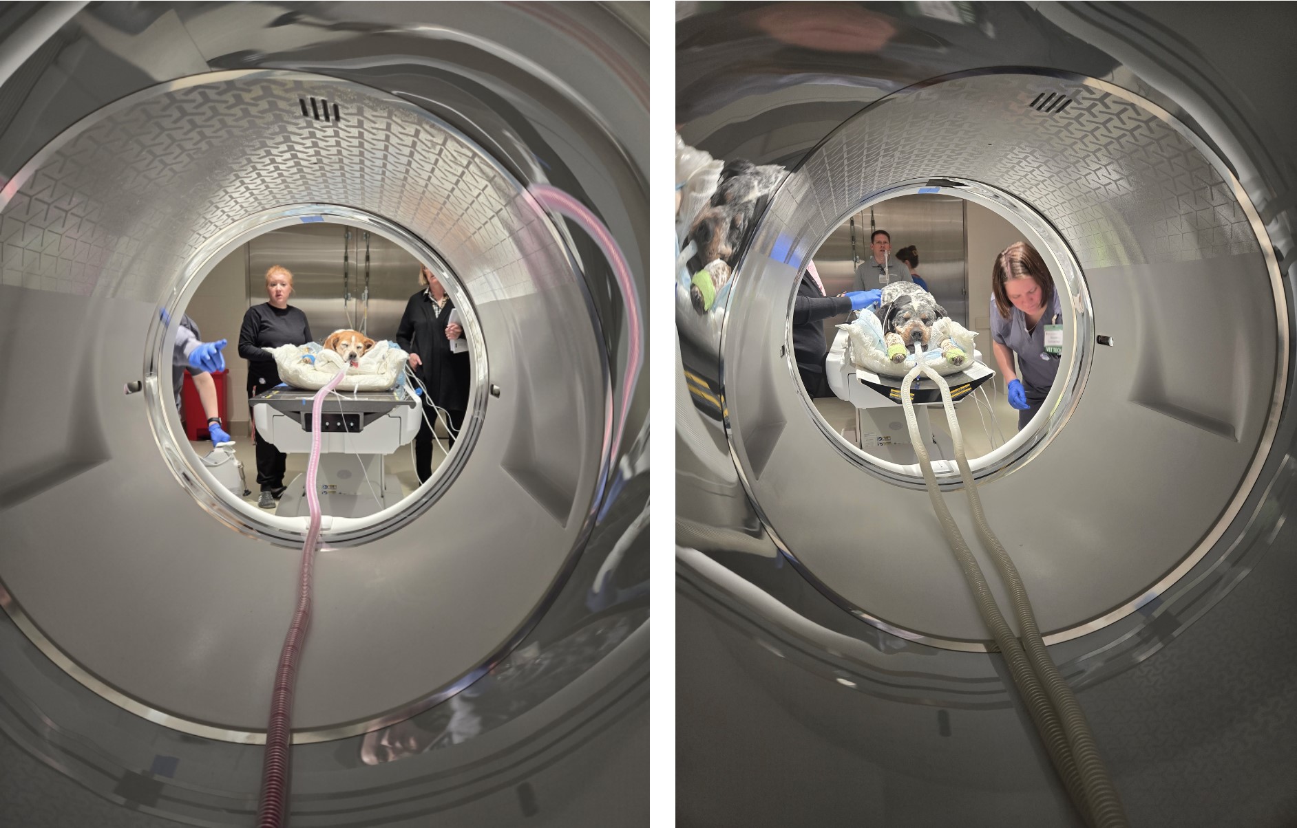 Last week, as we conducted final preparation to launch of our new and expanded PET/CT service, team members conducted comprehensive training and tests of the equipment and processes. Samantha Loeber (Department of Surgical Sciences) has been leading efforts in this area; her pooches Shelby and Sawyer even volunteered to come in and help make sure everything is working seamlessly. An in-house PET/CT will vastly improve patient standard of care by enabling us to better diagnose, stage, prognosticate, and treat cancer in animals. Due to highly sensitive assessment of tissue function, disease is often diagnosed earlier on PET/CT than with traditional imaging modalities. The addition of PET imaging on-site will also allow for cutting-edge research opportunities to investigate earlier disease diagnosis, delivery of targeted therapy, monitoring of treatment response, and identification of disease recurrence.